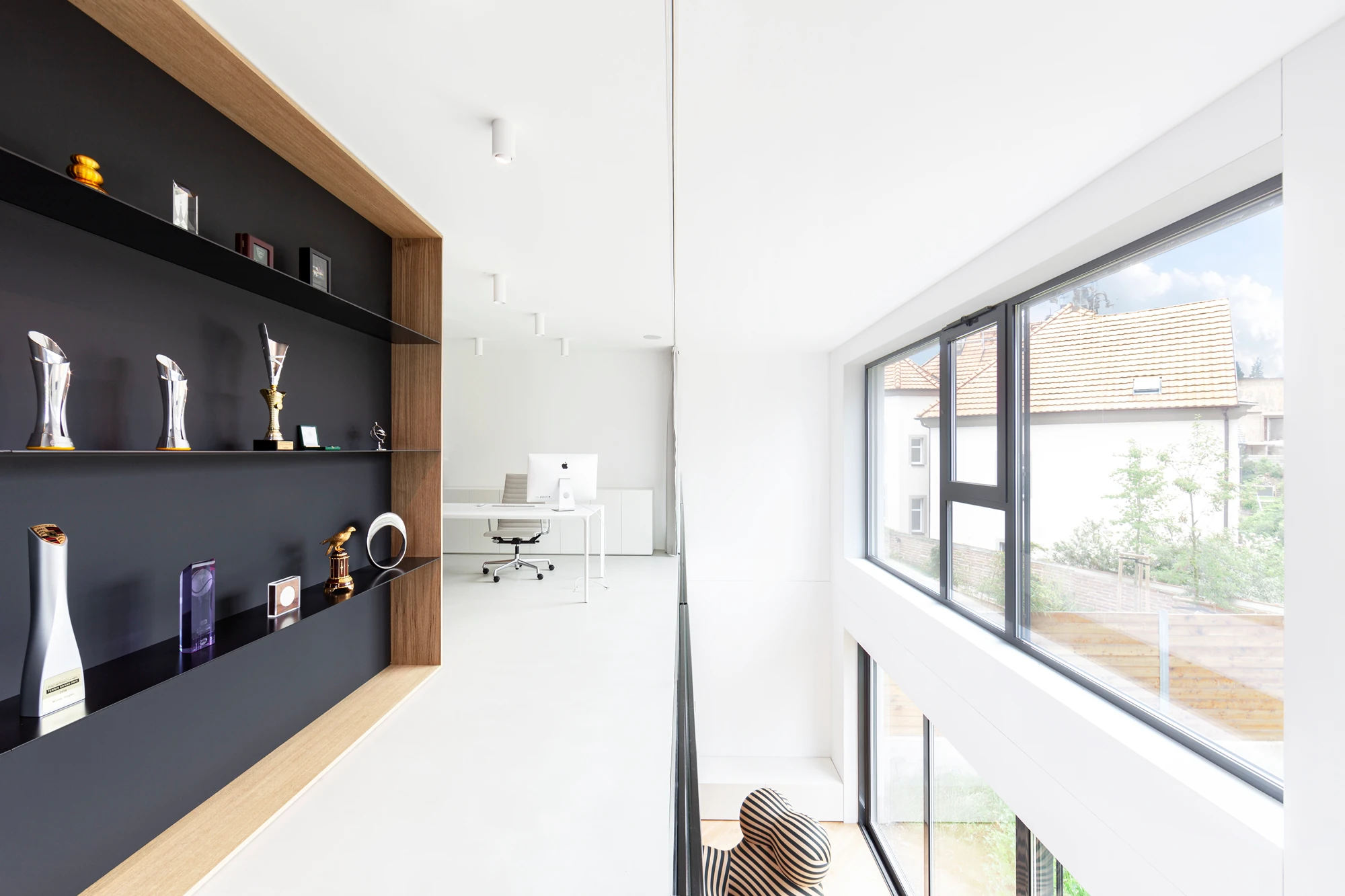 V rezidenční čtvrti v pražské Tróji navrhli architekti Roman Vrtiška, Vladimír Žák a Lucie Němcová interiéry vilového domu na čtyřech podlažích. Přání klientů bylo vytvoření bydlení na míru pro manželský pár profesionálních sportovců, které bude zhodnocovat stávající objekt. Unikátní je mj. umístění posilovny v nejvyšším patře objektu s impozantním výhledem na Prahu. Koncept vily je laděn do světlých a tmavých tónů, vždy dle významu a funkce místnosti, či daných prostor. Autoři se snažili pracovat s potenciálem psychologie barev. Světlá barva je použita primárně v denních/aktivních zónách a naopak tmavá vybízí k relaxaci a zklidnění.