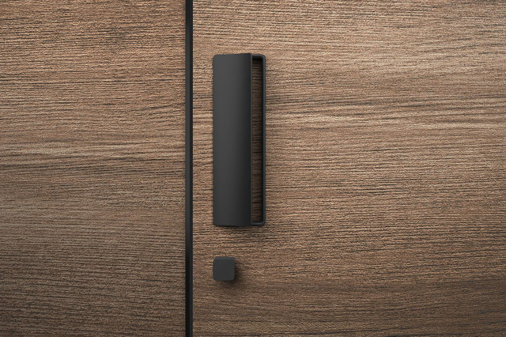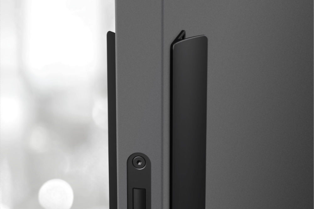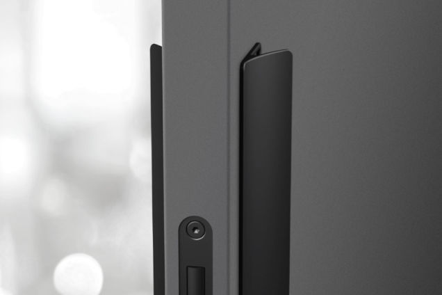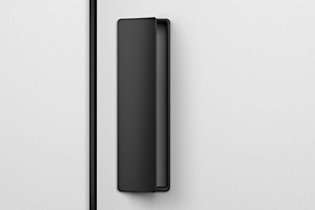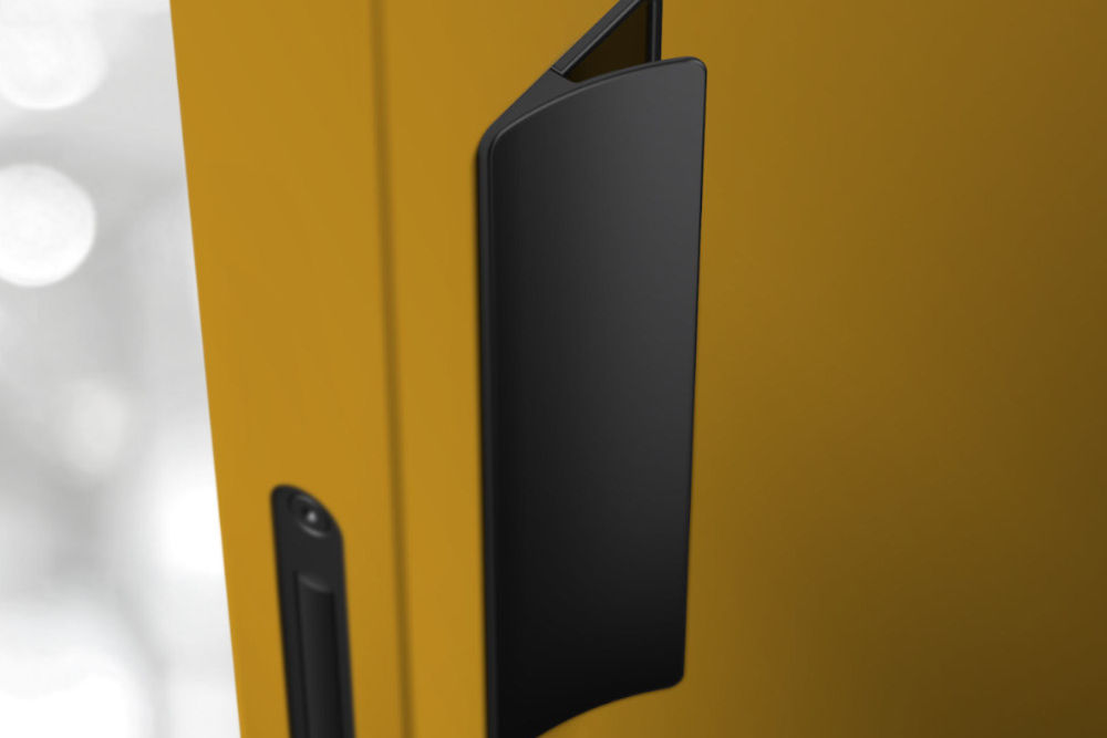 Dominantné madlo s ovládaním celou rukou. Ergonómia madla s miernym zaoblením úchopnej časti, s možnosťou zmeny/výmeny vnútornej magnetickej dosky pre zjednotenie povrchu madla s dverami, alebo pre výrazné zviditelnenie ovládacieho priestoru dverí.