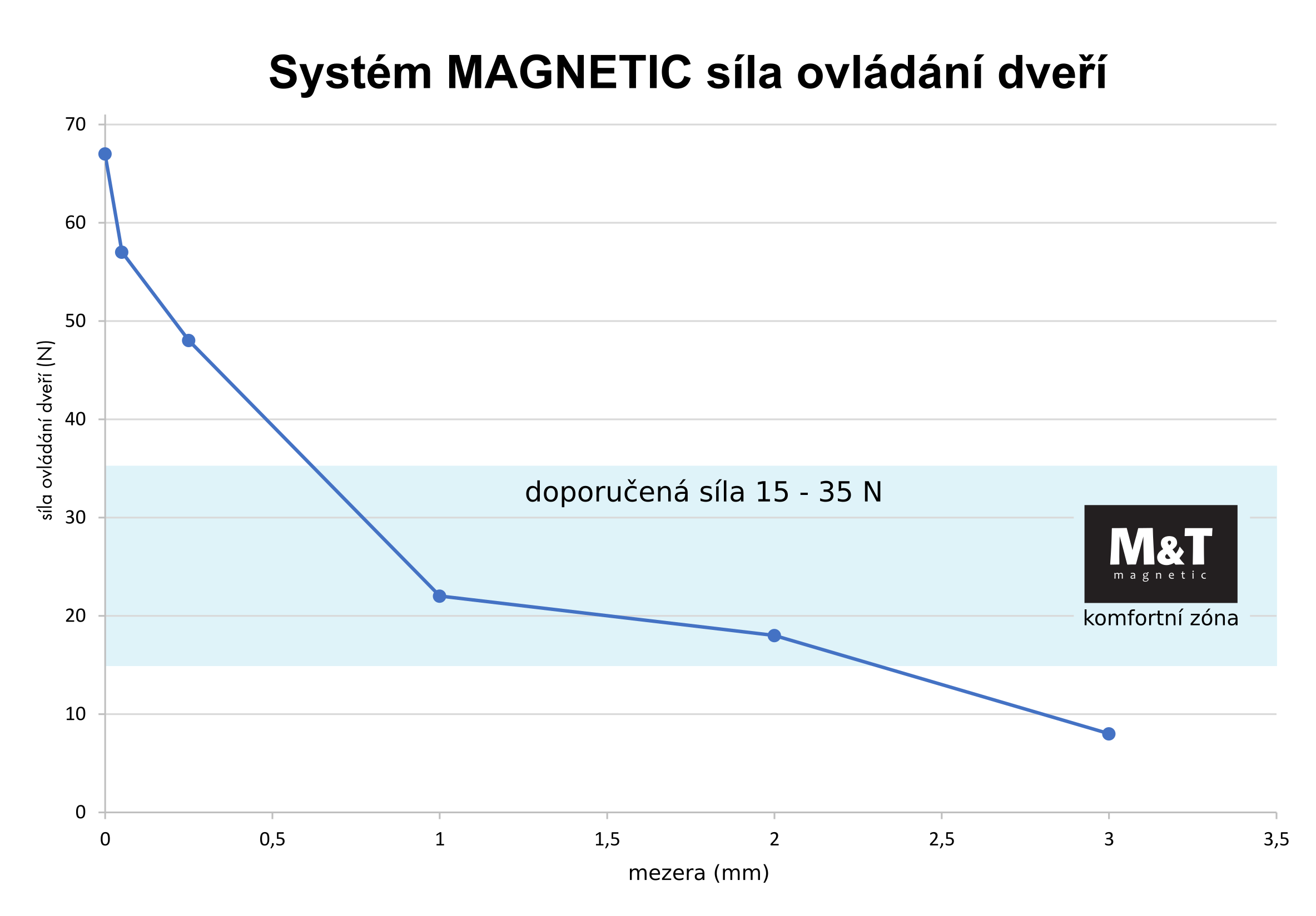 Pre komfortné ovládanie dverí systémom Magnetic odporúčame silu 15 - 35 N.