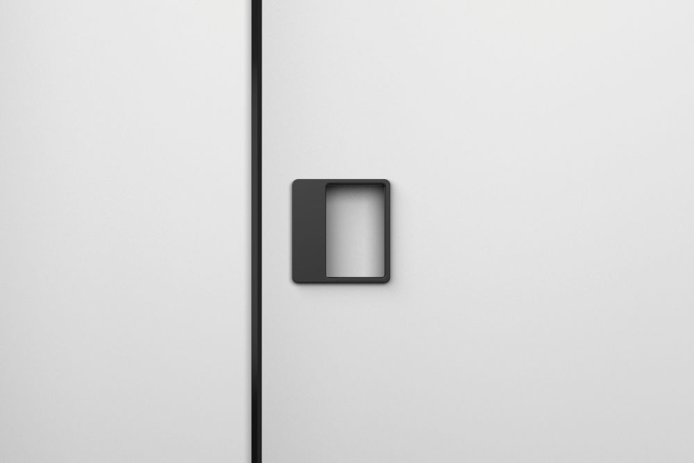 Set Magneticu, magnetického bloku a hranatého zapusteného madla Joo s jednoduchým ovládaním 2 – 4 prsty. Madlo s možnosťou zmeny/výmeny vnútornej magnetickej dosky pre zjednotenie povrchu/farby madla s dverami, alebo pre výrazné zviditeľnenie ovládacieho priestoru dverí.