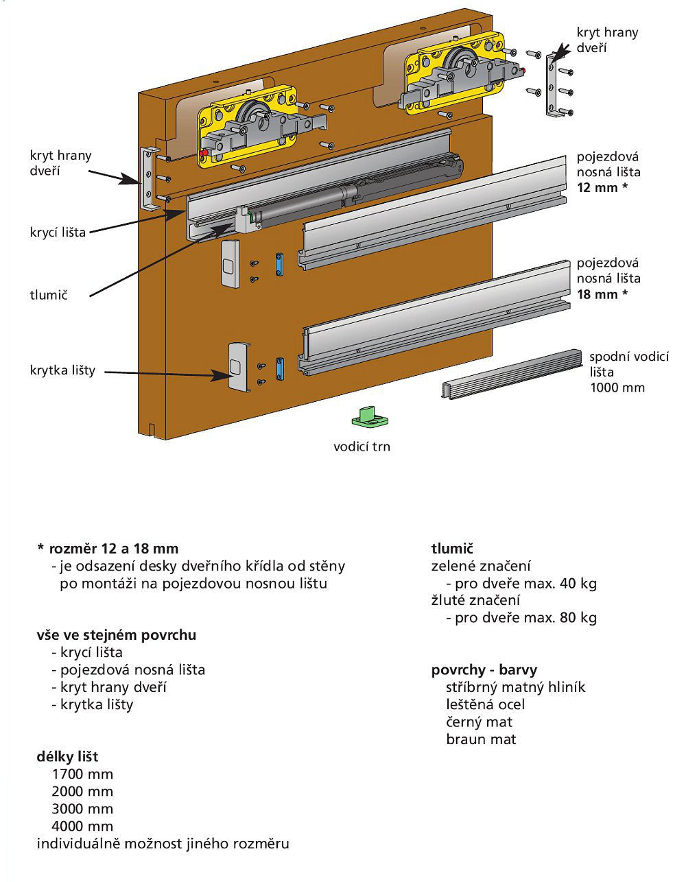 • délky lišt 1700, 2000, 3000, 4000 a 6000 mm