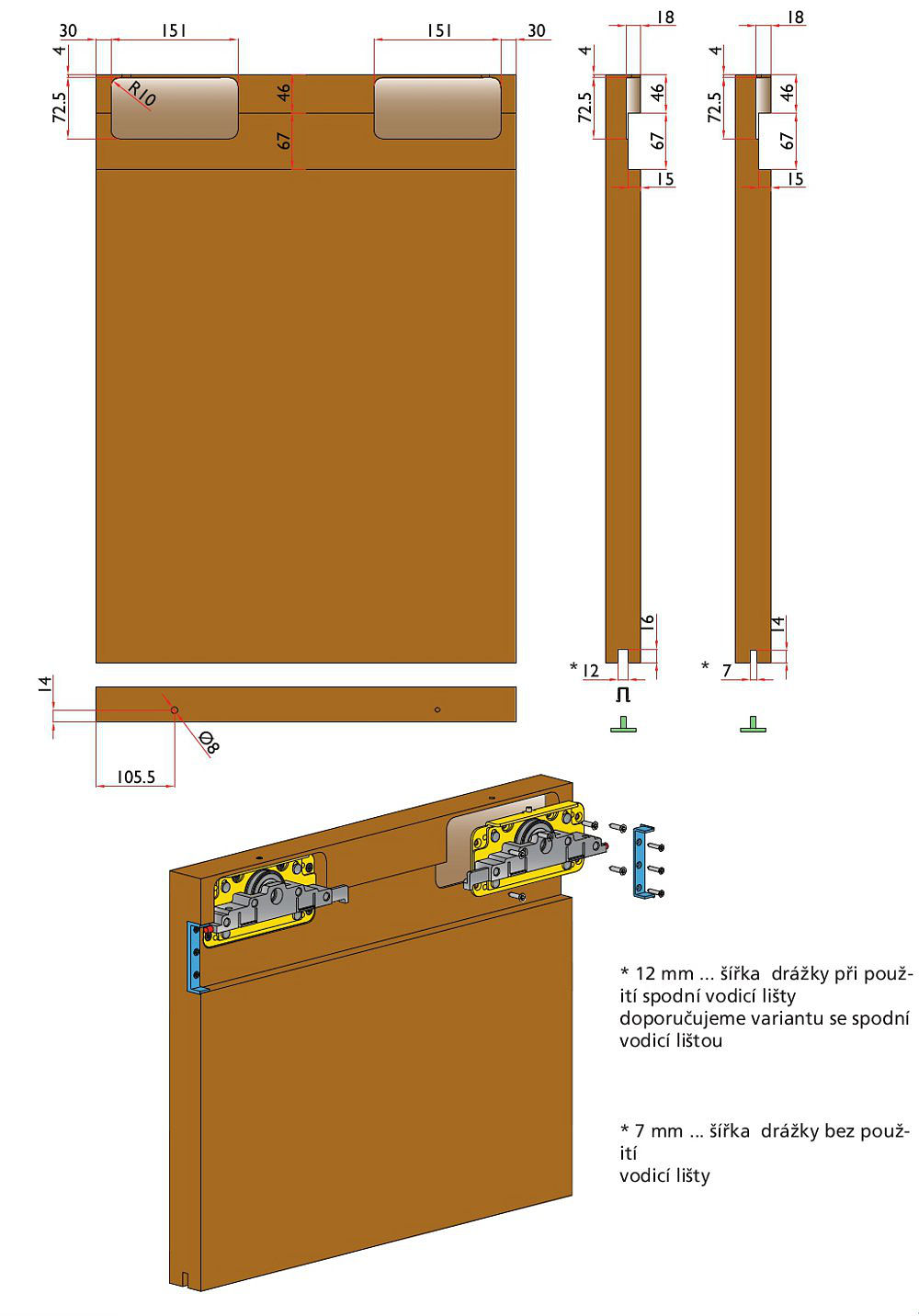 • univerzální systém pro dřevěné a skleněné dveře